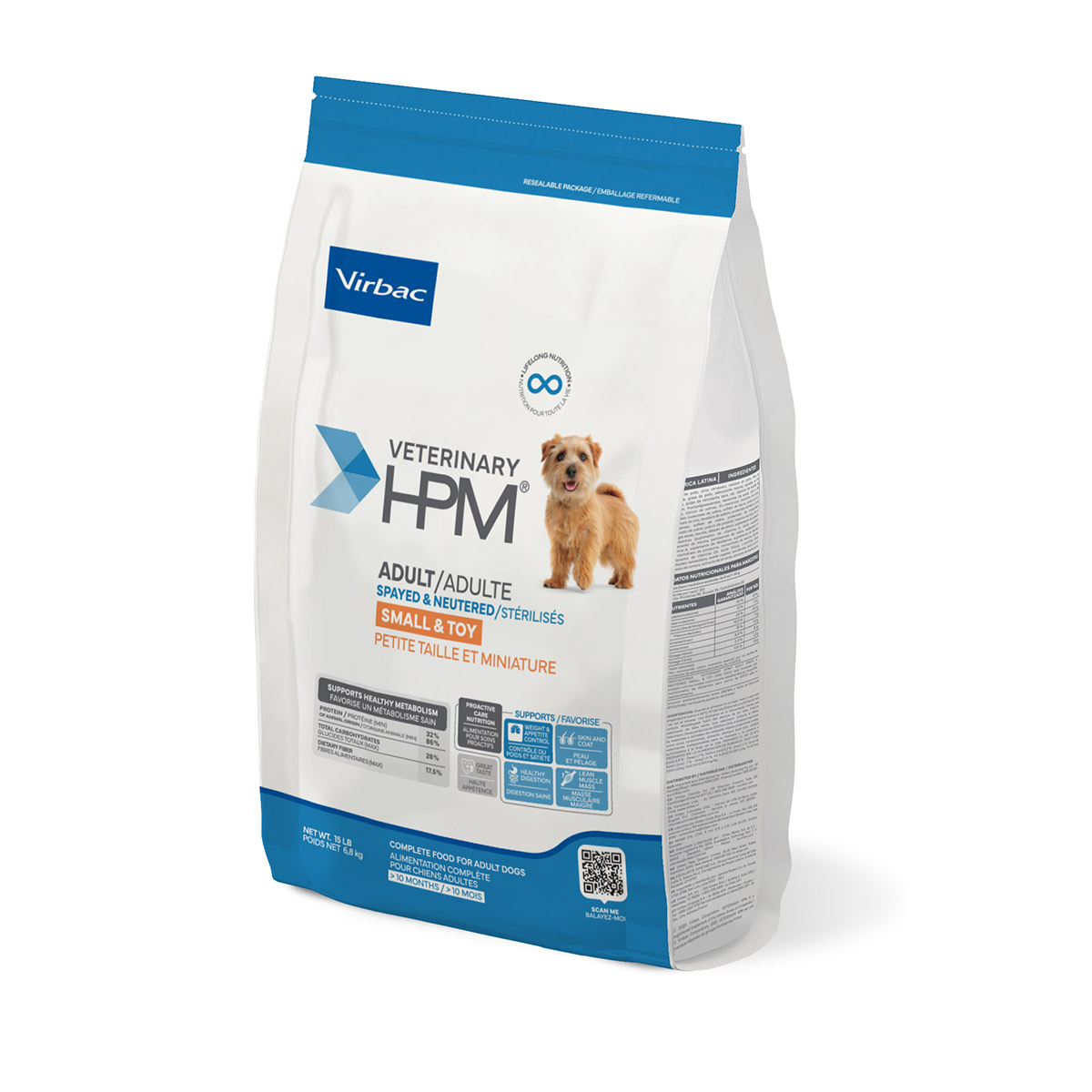 VETERINARY HPM® Spay & Neuter Diets are designed to support the health of your spayed or neutered adult Small Breed dog. The energy delivered through these Diets focuses on protein, with a moderate fat contribution and minimal carbohydrates. This macronutrient profile, in addition to a purposeful blend of soluble and insoluble fibers, supports pet satiety while delivering an appropriate caloric density for spayed and neutered pets.